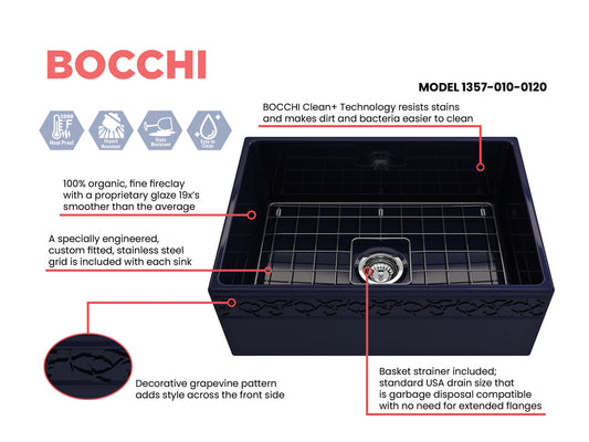 Vigneto Apron Front Fireclay 27" Single Bowl Kitchen Sink in Black