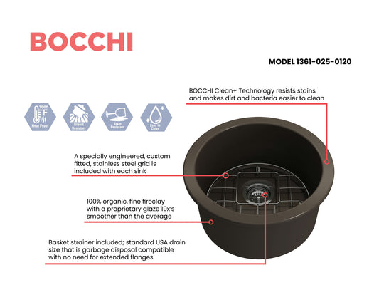 Sotto Round Dual-mount Fireclay 18.5" Single Bowl Bar Sink in Matte Brown