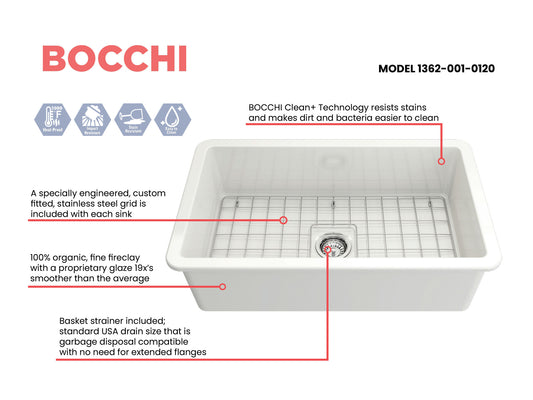 Vigneto Apron Front Fireclay 27" Single Bowl Kitchen Sink in Biscuit
