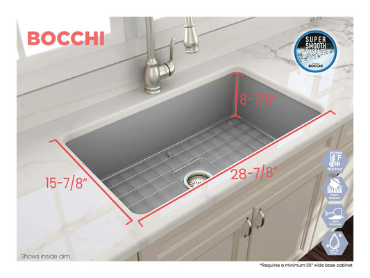 Sotto Dual-mount Fireclay 32" Single Bowl Kitchen Sink in Matte Gray