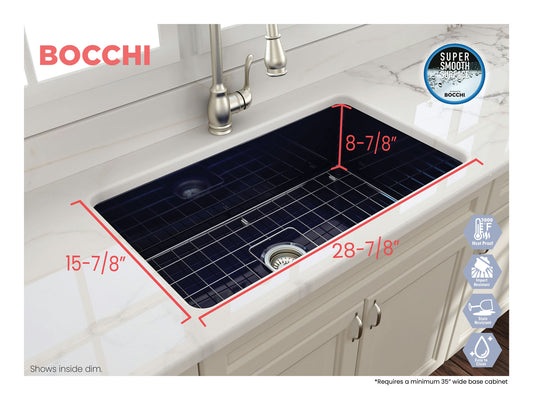 Sotto Dual-mount Fireclay 32" Single Bowl Kitchen Sink in Sapphire Blue