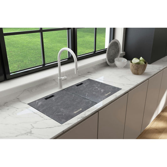 Baveno Lux Dual-Mount 34in. Single Bowl Kitchen Sinkin Concrete Gray with Covers