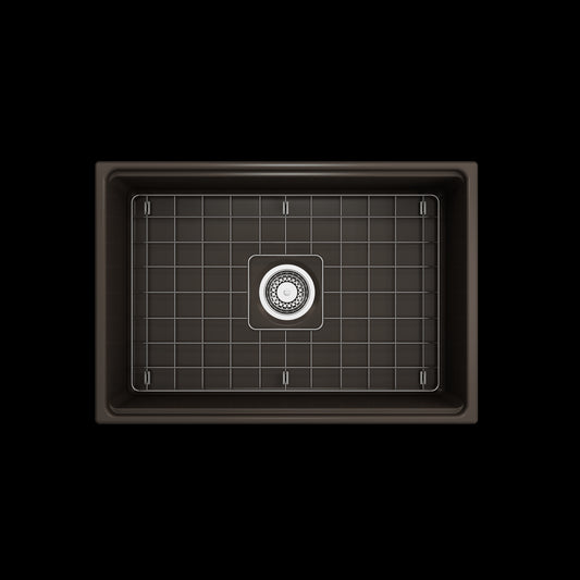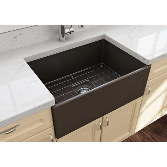 Contempo Apron Front Fireclay 27 in. Single Bowl Kitchen Sink with Protective Bottom Grid and Strainer in Matte Brown
