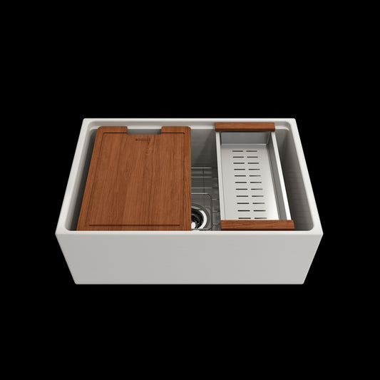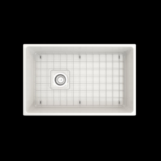 Vigneto Apron Front Fireclay 30 in. Single Bowl Kitchen Sink with Protective Bottom Grid and Strainer in White
