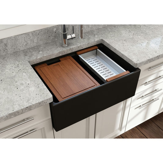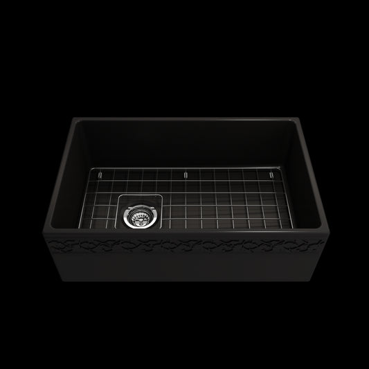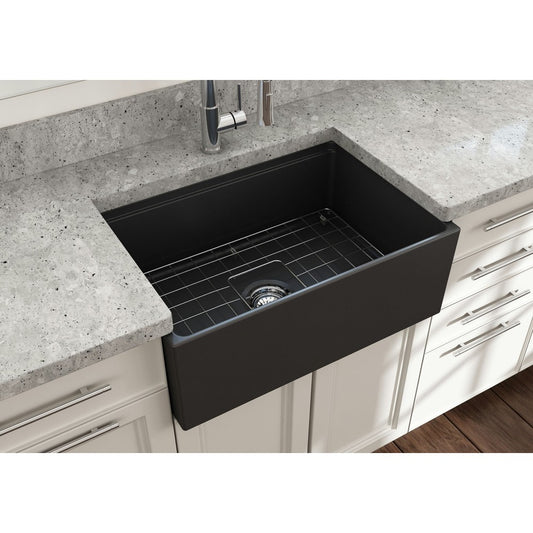 Vigneto Apron Front Fireclay 30 in. Single Bowl Kitchen Sink with Protective Bottom Grid and Strainer in Matte Black