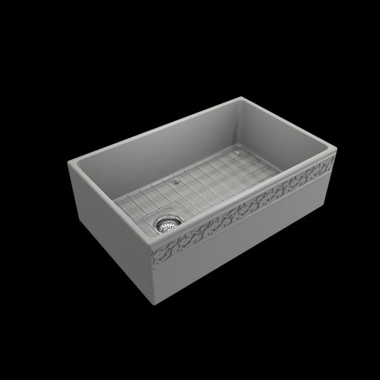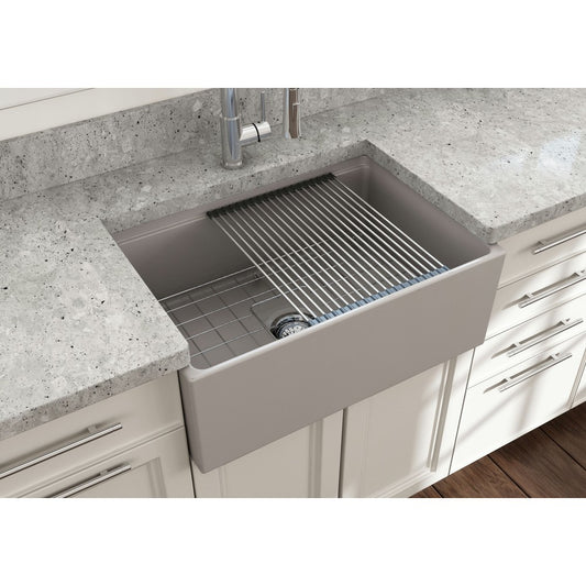 Vigneto Apron Front Fireclay 30 in. Single Bowl Kitchen Sink with Protective Bottom Grid and Strainer in Matte Gray