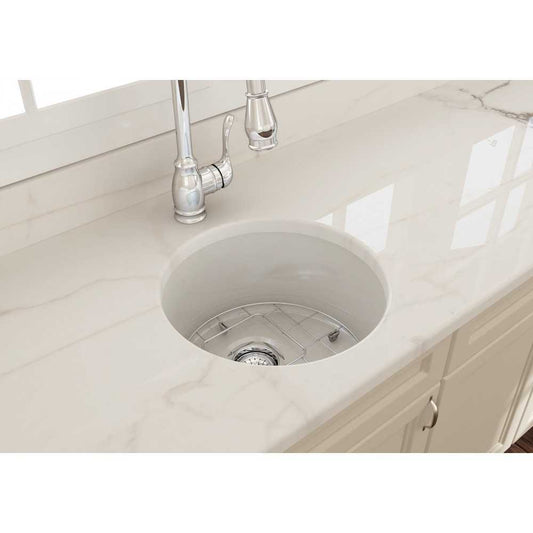 Sotto Round Dual Mount Fireclay 18.5 in. Single Bowl Bar Sink with Protective Bottom Grid and Strainer in Biscuit