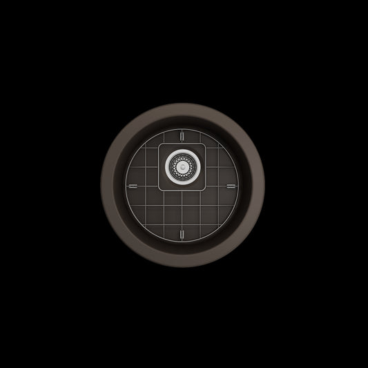 Sotto Round Dual Mount Fireclay 18.5 in. Single Bowl Bar Sink with Protective Bottom Grid and Strainer in Matte Brown