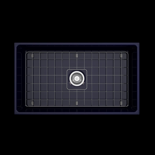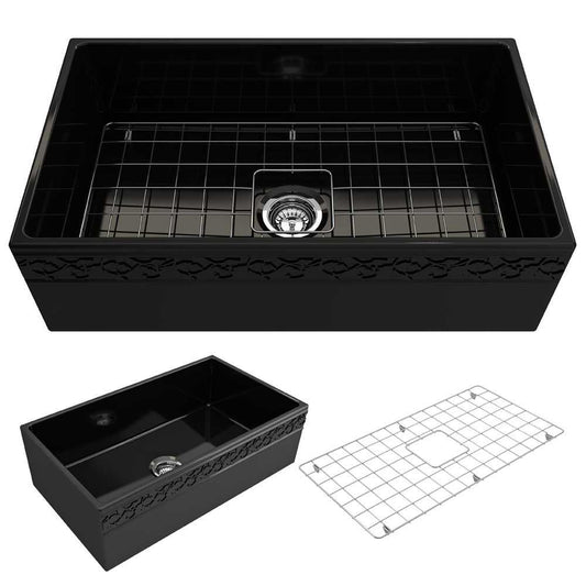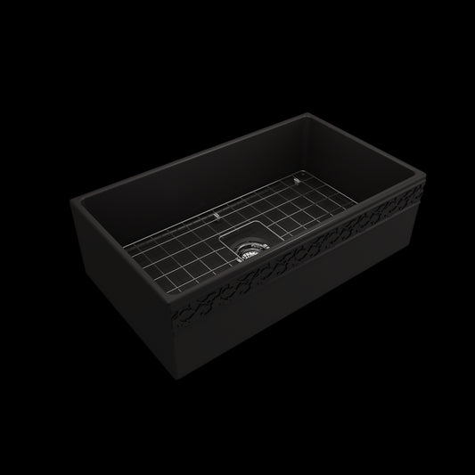 Vigneto Apron Front Fireclay 33 in. Single Bowl Kitchen Sink with Protective Bottom Grid and Strainer in Black