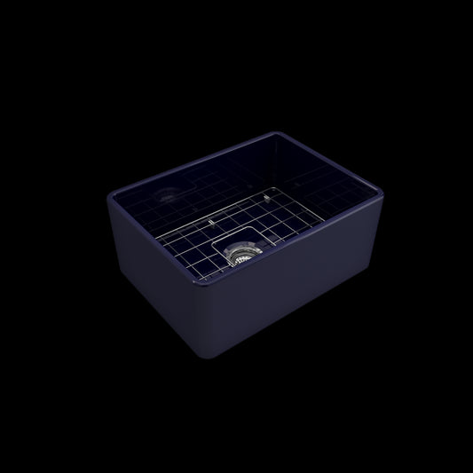Farmhouse Apron Front Fireclay 24 in. Single Bowl Kitchen Sink with Protective Bottom Grid and Strainer in Sapphire Blue