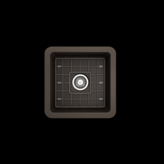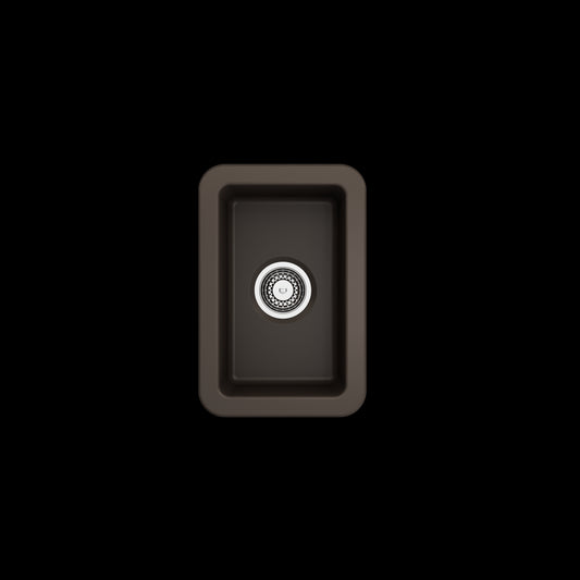 Sotto Dual Mount Fireclay 12 in. Single Bowl Bar Sink Strainer in Matte Brown