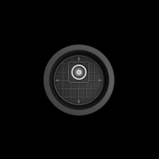 Sotto Round Dual Mount Fireclay 18.5 in. Single Bowl Bar Sink with Protective Bottom Grid and Strainer in Matte Dark Gray