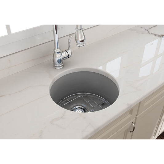 Sotto Round Dual Mount Fireclay 18.5 in. Single Bowl Bar Sink with Protective Bottom Grid and Strainer in Matte Gray