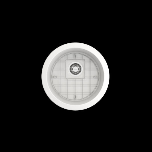 Sotto Round Dual Mount Fireclay 18.5 in. Single Bowl Bar Sink with Protective Bottom Grid and Strainer in Matte White