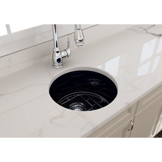 Sotto Round Dual Mount Fireclay 18.5 in. Single Bowl Bar Sink with Protective Bottom Grid and Strainer in Black