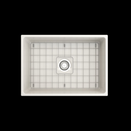 Vigneto Apron Front Fireclay 27 in. Single Bowl Kitchen Sink with Protective Bottom Grid and Strainer in Biscuit