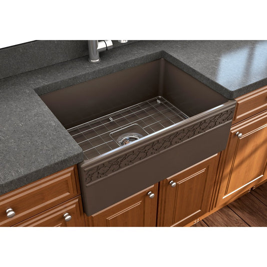 Vigneto Apron Front Fireclay 27 in. Single Bowl Kitchen Sink with Protective Bottom Grid and Strainer in Matte Brown