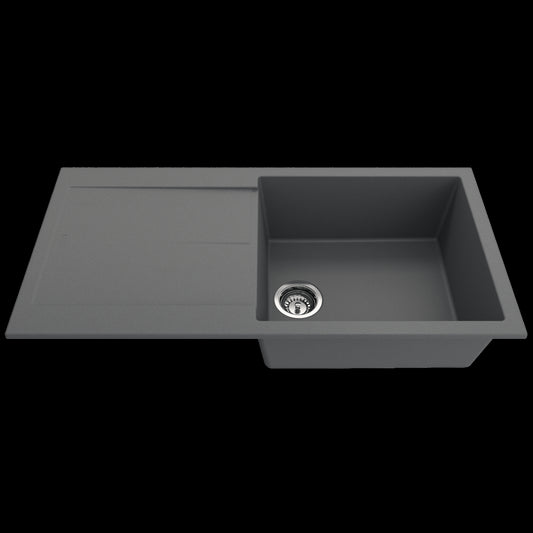 Dual-Mount 20 in. Single Bowl Granite Composite Kitchen Sink with Drain Board, Concrete Gray