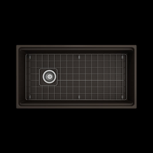 Apron Front Step Rim with Integrated Work Station Fireclay 36 in. Single Bowl Kitchen Sink with Accessories in Matte Brown