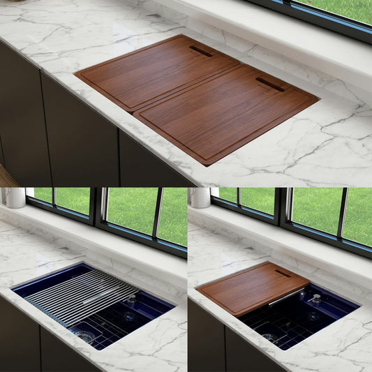 Baveno Uno Dual-Mount with Integrated Workstation Fireclay 27 in. Sapphire Blue