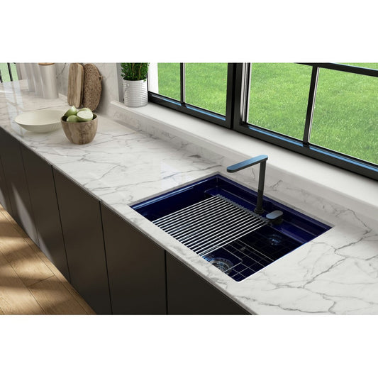 Sotto Dual-Mount Fireclay 24 in. Single Bowl Kitchen Sink in Sapphire Blue