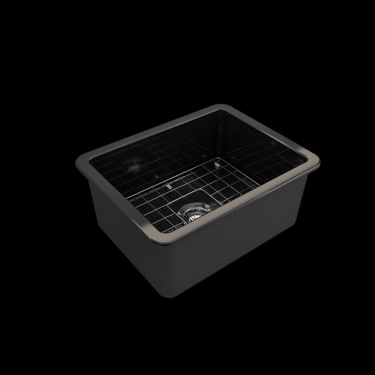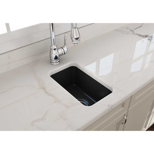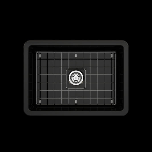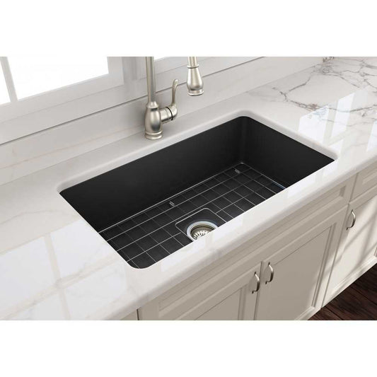 Sotto Undermount Fireclay 27 in. Single Bowl Kitchen Sink with Protective Bottom Grid and Strainer in Black