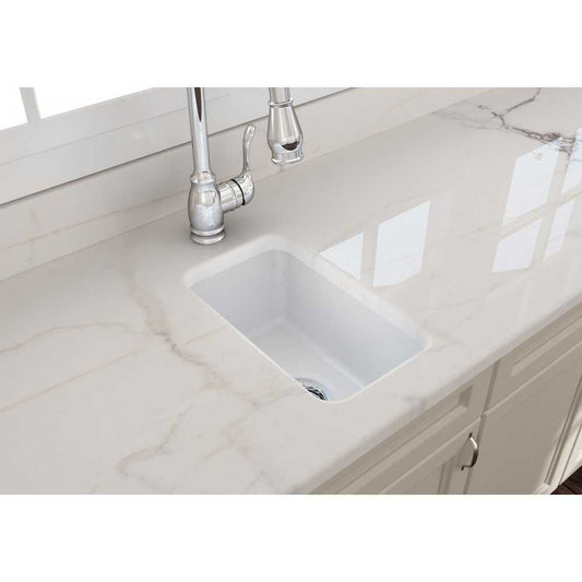Sotto Dual Mount Fireclay 12 in. Single Bowl Bar Sink with Strainer in Matte White