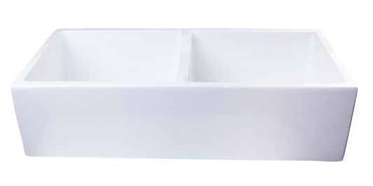 ALFI brand 36" White Smooth Apron Thick Wall Fireclay Double Bowl Farm Sink
