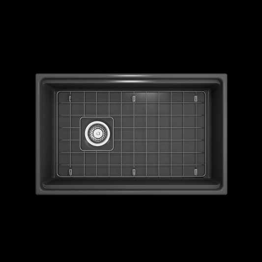 Apron Front Step Rim with Integrated Work Station Fireclay 30 in. Single Bowl Kitchen Sink with Accessories in Matte Dark Gray