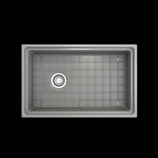 Apron Front Step Rim with Integrated Work Station Fireclay 30 in. Single Bowl Kitchen Sink with Accessories in Matte Gray