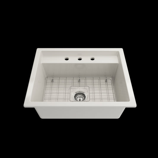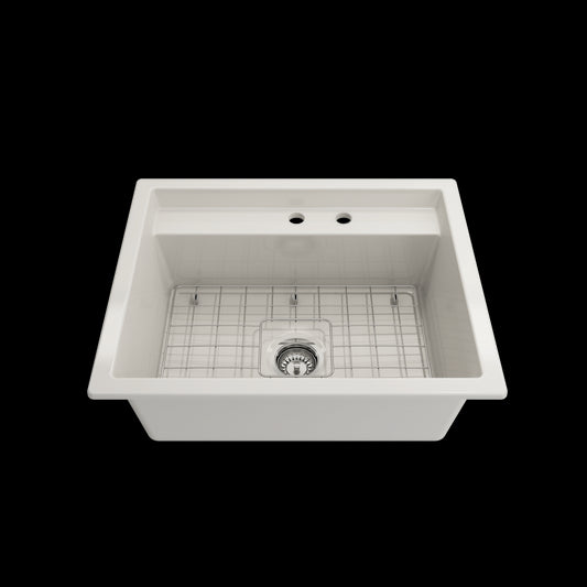 Baveno Uno Dual-Mount with Workstation Fireclay 27 in. in Biscuit