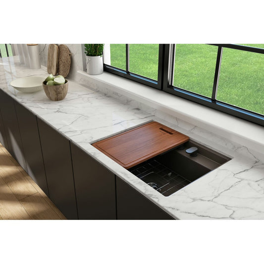 Baveno Uno Dual-Mount with Integrated Workstation Fireclay 27 in. in Matte Brown