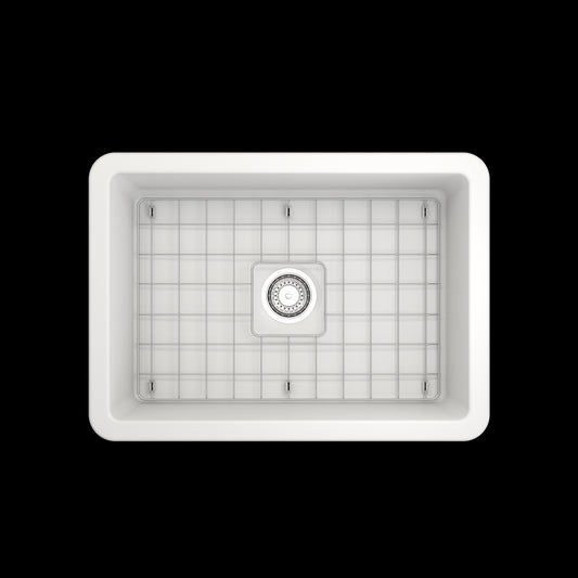 Sotto Undermount Fireclay 27 in. Single Bowl Kitchen Sink with Protective Bottom Grid and Strainer in Matte White