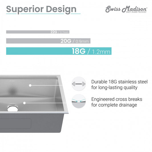 Swiss Madison Ouvert 33 x 22 Stainless Steel, Dual Basin, Top-Mount Kitchen Sink