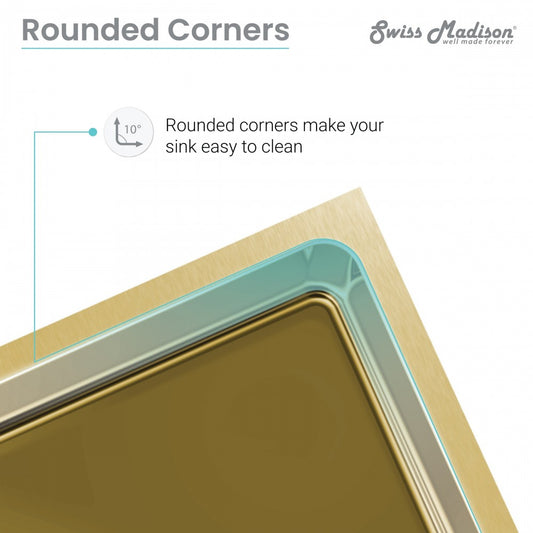 Rivage 33x21 Stainless Steel, Single Basin, Farmhouse Kitchen Sink, Apron, Gold