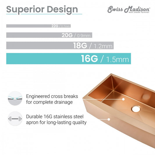 Rivage 33 x 21 Stainless Steel, Farmhouse Kitchen Sink with Apron in Rose Gold