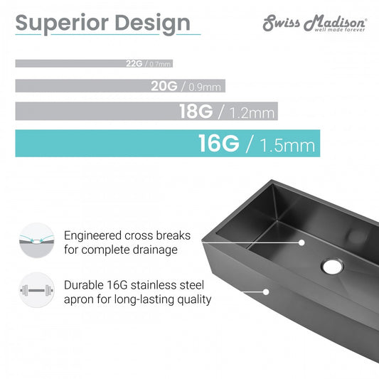 Rivage 36x21 Stainless Steel, Single Basin, Farmhouse Kitchen Sink, Apron, Black