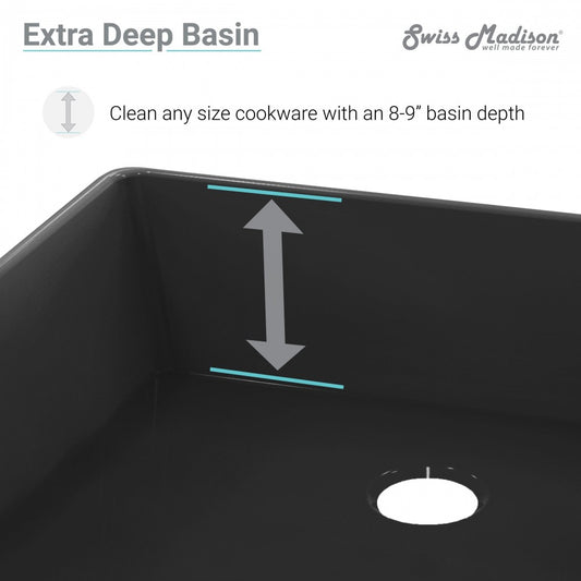 Lyon 33 x 18 Fireclay, Single Basin, Farmhouse Kitchen Sink in Matte Black