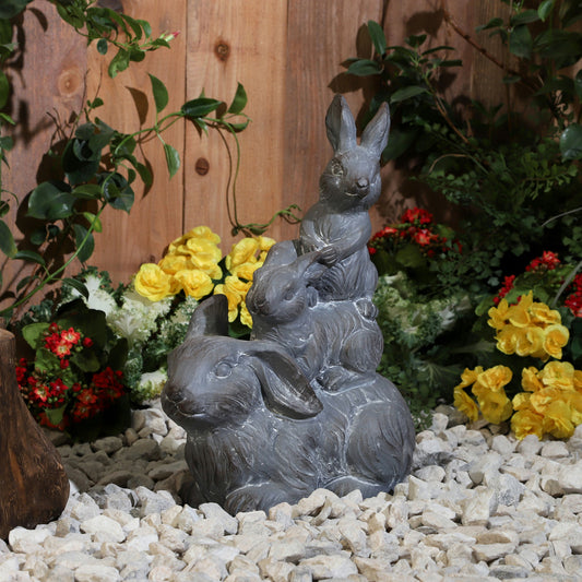 Sold outResin, 16"h Three Bunnies Deco, Gray