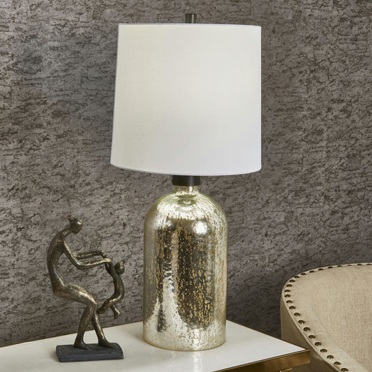Glass, 25" Classic Table Lamp, Ivory/beige