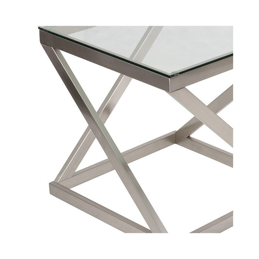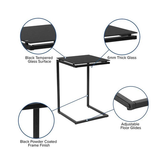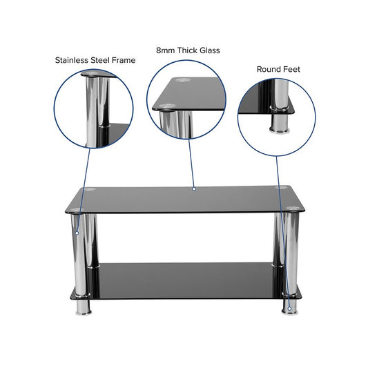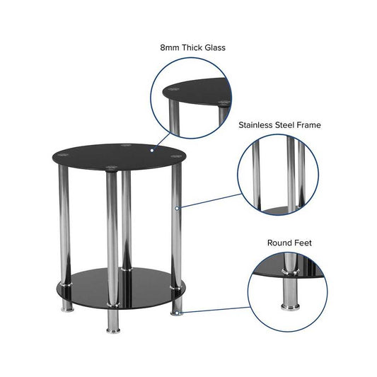 Riverside Collection Black Glass End Table with Shelves and Stainless Steel Frame
