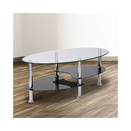 Hampden Glass Coffee Table with Black Glass Shelves and Stainless Steel Legs