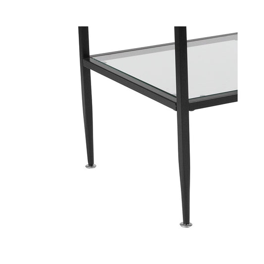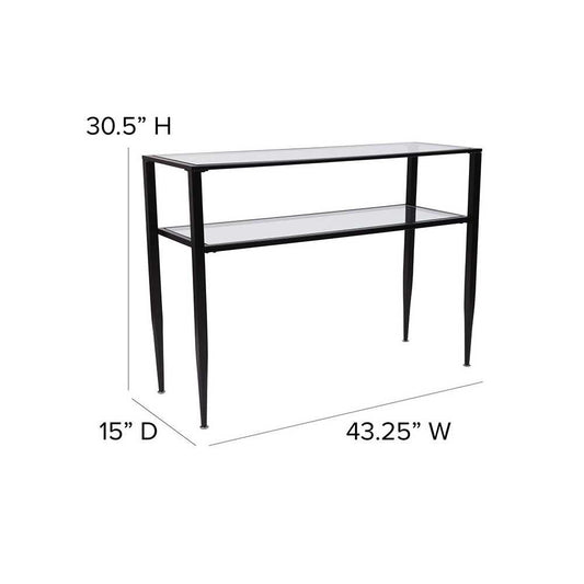 Newport Collection Glass Console Table with Shelves and Black Metal Frame
