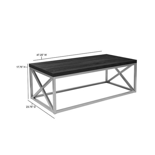 Park Ridge Black Coffee Table with Silver Finish Frame