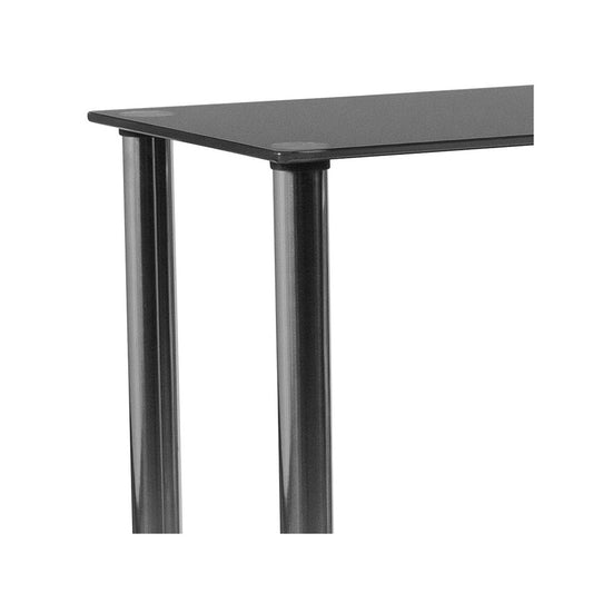 Riverside Collection Black Glass Console Table with Shelves and Stainless Steel Frame