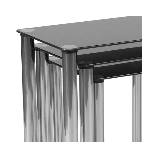 Riverside Collection Black Glass Nesting Tables with Stainless Steel Legs