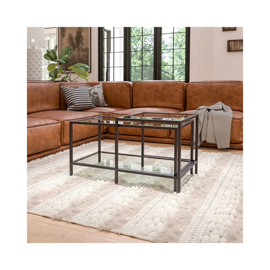Westerly Multi-Tiered Glass Coffee Table with Black Metal Frame
