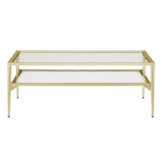Rayna 42" Two Tier Glass and Metal Coffee Table - Gold
