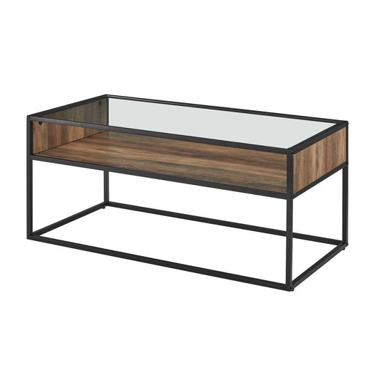 Jersey Urban Box Frame Glass Top Coffee Table - Rustic Oak