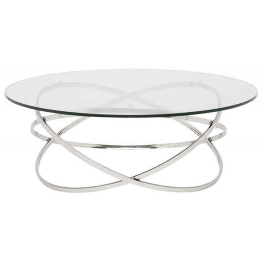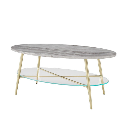 42" Oval Faux Marble and Glass Coffee Table - Gray Faux Vein Cut Marble/Gold